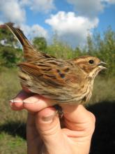 Bruant des roseaux | Parmis les espèces dites "paludicoles" (qui vivent dans les roselières, les étangs ou les marais), le Bruant des roseaux, la Mésange bleue et la Rémiz penduline, sont les 3 espèces les plus capturées entre 1999 et 2013 lors des études par capture et baguage. | Rémiz penduline |
