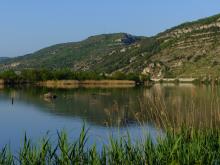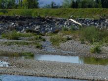| Banc de galets dans le lit de la Drôme | Pelouse sèche sur les digues de Printegarde |