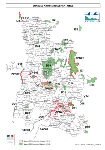 Certains sites sont désignés pour les 2 directives (ex : les ramières de la basse Drôme, la forêt de Saoû) et/ou interdépartementaux.